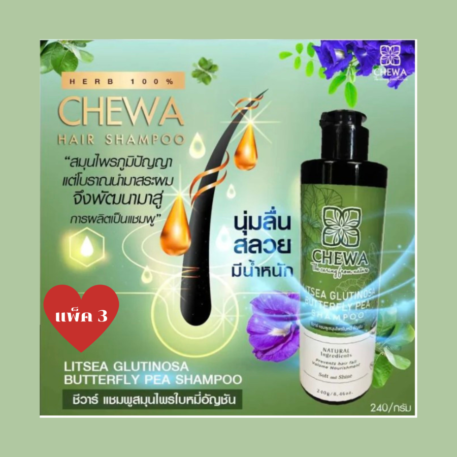 แชมพูสระผม ผสมสมุนไพรใบหมี่อัญชันสูตรดั้งเดิมชีวาร์Chewa