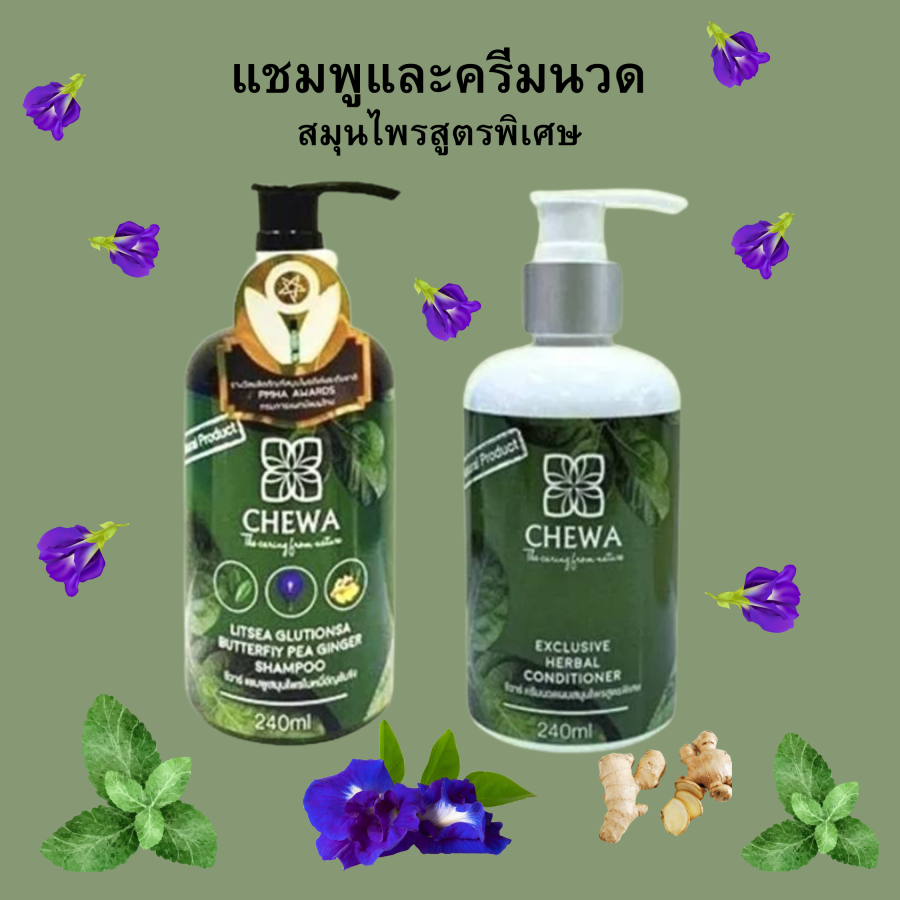Chawa ชีวาร์ แชมพูและครีมนวด สมุนไพรสูตรพิเศษ